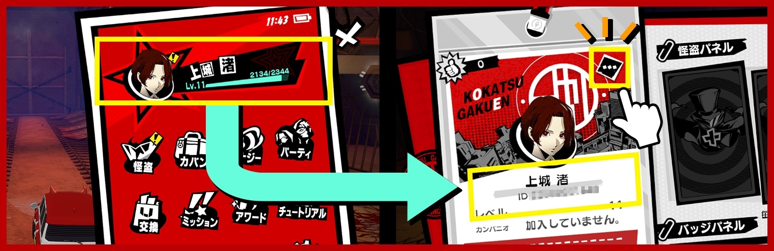 3.上部のご自身の名前が表示されているキャラクターアイコンを開く